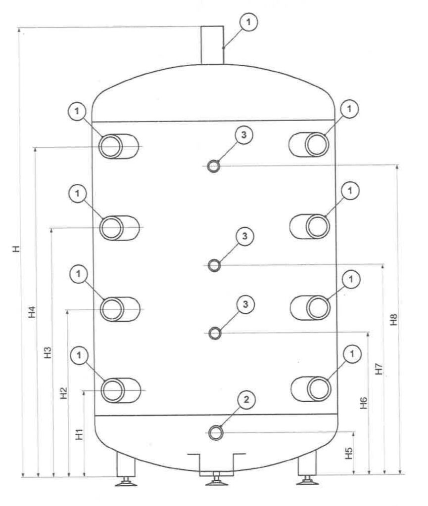Zbiorniki buforowe wykonane są z blachy stalowej czarnej, wewnątrz w stanie surowym a na zewnątrz zabezpieczone farbą antykorozyjną. Zbiorniki posiadają izolację cieplną ze styropianu i wełny syntetycznej. Estetyczna, rozbieralna obudowa wykonana z tkaniny typu skay w kolorze szarym. Duża liczba przyłączy umożliwia różne warianty podłączenia.